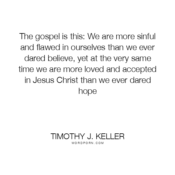 The gospel is this: We are more sinful and flawed in ourselves than we ever dared believe, yet at the very same time we are more loved and accepted in Jesus Christ than we ever dared hope