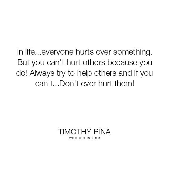 In life...everyone hurts over something. But you can't hurt others because you do! Always try to help others and if you can't...Don't ever hurt them!