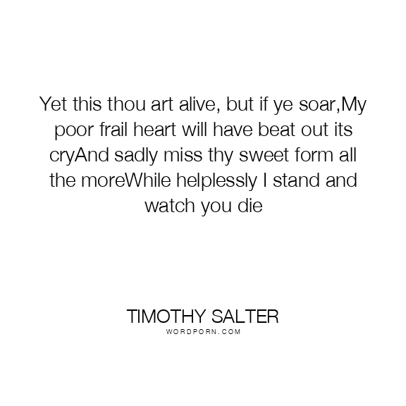 Yet this thou art alive, but if ye soar,My poor frail heart will have beat out its cryAnd sadly miss thy sweet form all the moreWhile helplessly I stand and watch you die