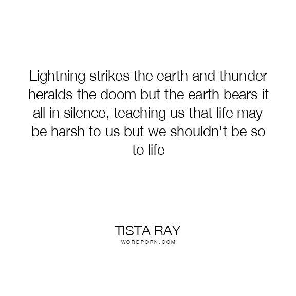 Lightning strikes the earth and thunder heralds the doom but the earth bears it all in silence, teaching us that life may be harsh to us but we shouldn't be so to life