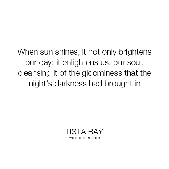 When sun shines, it not only brightens our day; it enlightens us, our soul, cleansing it of the gloominess that the night's darkness had brought in