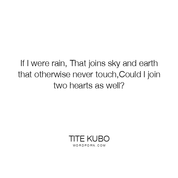 If I were rain, That joins sky and earth that otherwise never touch,Could I join two hearts as well?