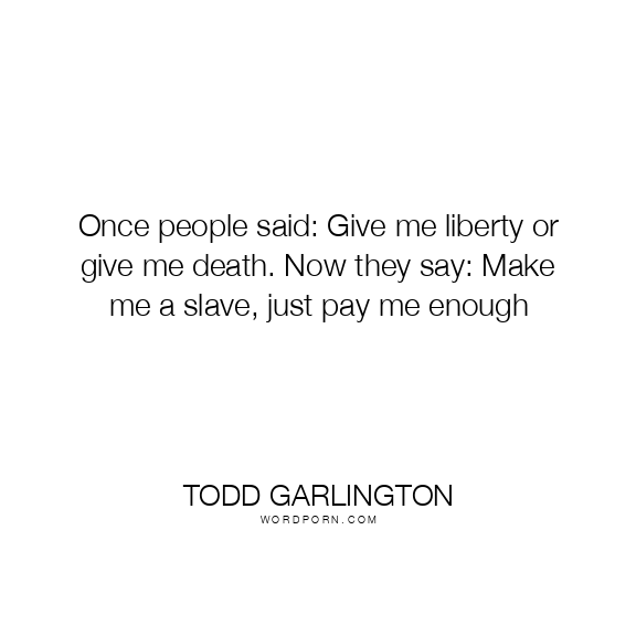 Copy Image Once people said: Give me liberty or give me death. Now they say: Make me a slave, just pay me enough Moms Typewriter A A SAVE THIS IMAGE