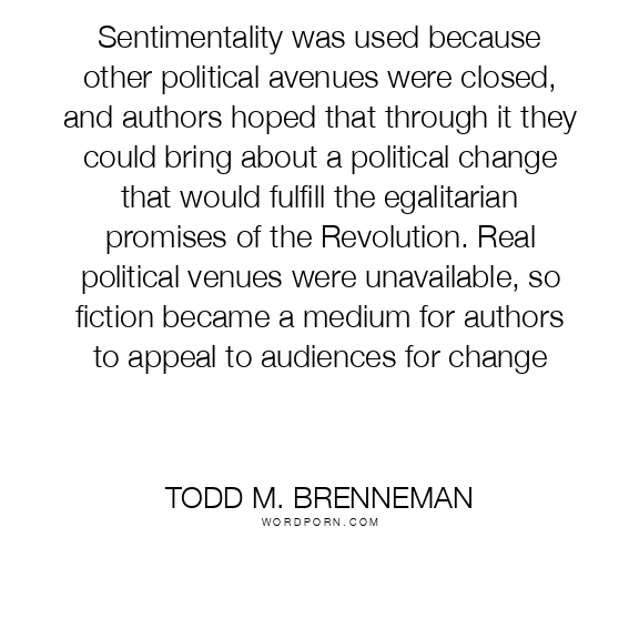 Sentimentality was used because other political avenues were closed, and authors hoped that through it they could bring about a political change that would fulfill the egalitarian promises of the Revolution. Real political venues were unavailable, so fiction became a medium for authors to appeal to audiences for change