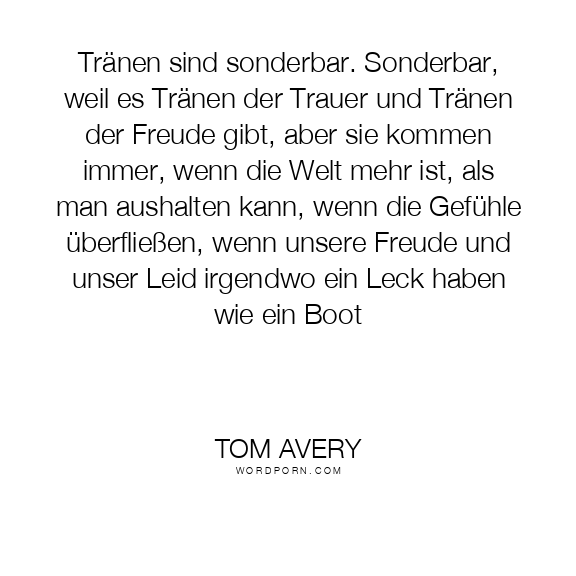 Tränen sind sonderbar. Sonderbar, weil es Tränen der Trauer und Tränen der Freude gibt, aber sie kommen immer, wenn die Welt mehr ist, als man aushalten kann, wenn die Gefühle überfließen, wenn unsere Freude und unser Leid irgendwo ein Leck haben wie ein Boot