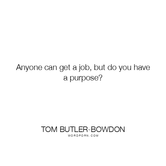 Tom Butler-Bowdon quote. Anyone can get a job, but do you have a purpose?