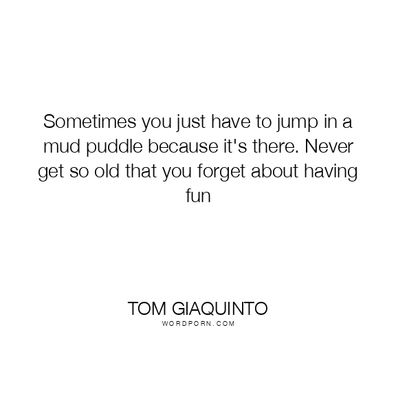 Sometimes you just have to jump in a mud puddle because it's there. Never get so old that you forget about having fun