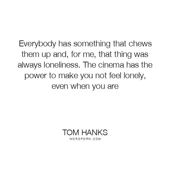Everybody has something that chews them up and, for me, that thing was always loneliness. The cinema has the power to make you not feel lonely, even when you are