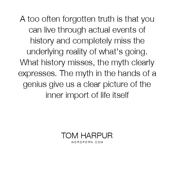 A too often forgotten truth is that you can live through actual events of history and completely miss the underlying reality of what's going. What history misses, the myth clearly expresses. The myth in the hands of a genius give us a clear picture of the inner import of life itself