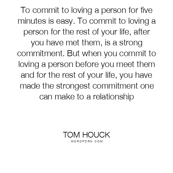 To commit to loving a person for five minutes is easy. To commit to loving a person for the rest of your life, after you have met them, is a strong commitment. But when you commit to loving a person before you meet them and for the rest of your life, you have made the strongest commitment one can make to a relationship