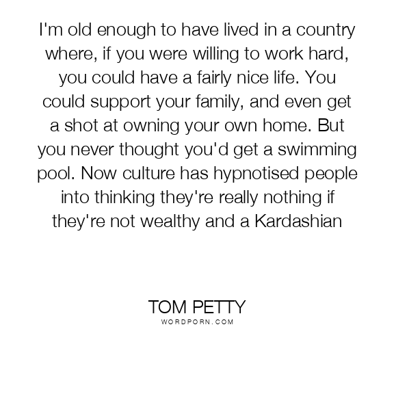 I'm old enough to have lived in a country where, if you were willing to work hard, you could have a fairly nice life. You could support your family, and even get a shot at owning your own home. But you never thought you'd get a swimming pool. Now culture has hypnotised people into thinking they're really nothing if they're not wealthy and a Kardashian
