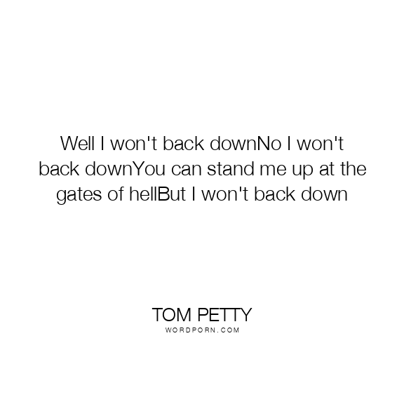 Well I won't back downNo I won't back downYou can stand me up at the gates of hellBut I won't back down