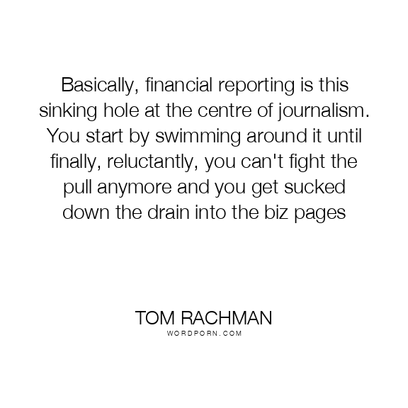 Basically, financial reporting is this sinking hole at the centre of journalism. You start by swimming around it until finally, reluctantly, you can't fight the pull anymore and you get sucked down the drain into the biz pages
