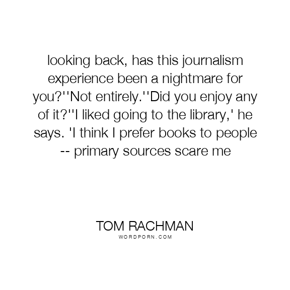 looking back, has this journalism experience been a nightmare for you?''Not entirely.''Did you enjoy any of it?''I liked going to the library,' he says. 'I think I prefer books to people -- primary sources scare me