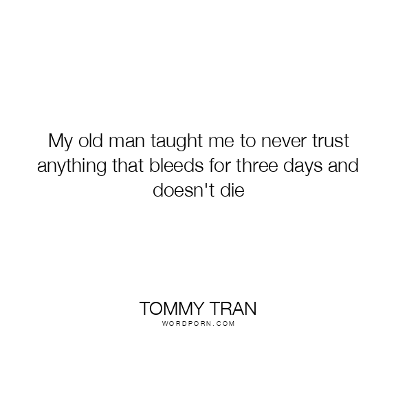My old man taught me to never trust anything that bleeds for three days and doesn't die