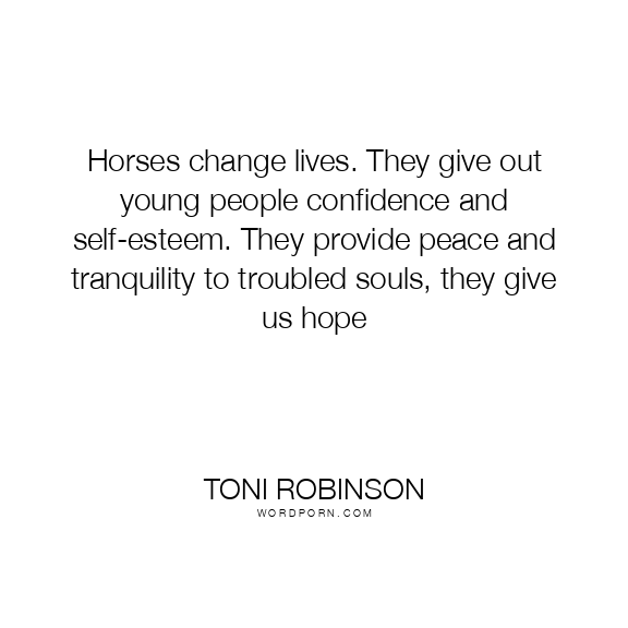Copy Image Horses change lives. They give out young people confidence and self-esteem. They provide peace and tranquility to troubled souls, they give us hope Moms Typewriter A A SAVE THIS IMAGE