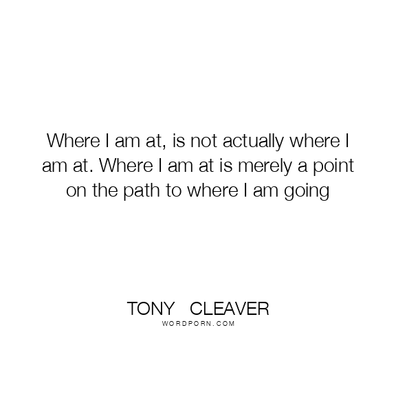 Where I am at, is not actually where I am at. Where I am at is merely a point on the path to where I am going