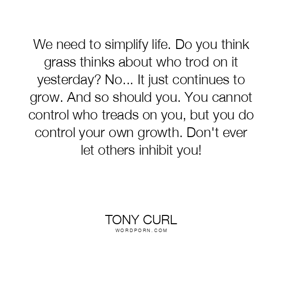 We need to simplify life. Do you think grass thinks about who trod on it yesterday? No... It just continues to grow. And so should you. You cannot control who treads on you, but you do control your own growth. Don't ever let others inhibit you!