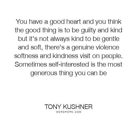 You have a good heart and you think the good thing is to be guilty and kind but it's not always kind to be gentle and soft, there's a genuine violence softness and kindness visit on people. Sometimes self-interested is the most generous thing you can be