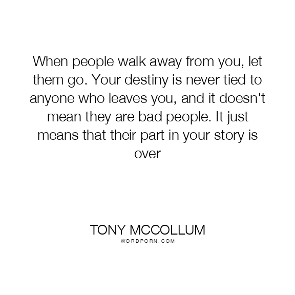 When people walk away from you, let them go. Your destiny is never tied to anyone who leaves you, and it doesn't mean they are bad people. It just means that their part in your story is over