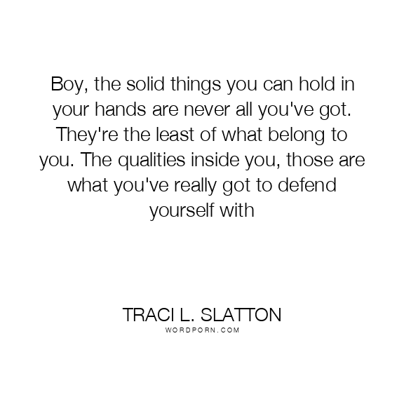 Boy, the solid things you can hold in your hands are never all you've got. They're the least of what belong to you. The qualities inside you, those are what you've really got to defend yourself with