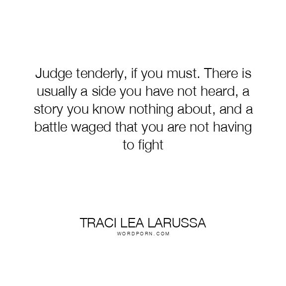 Judge tenderly, if you must. There is usually a side you have not heard, a story you know nothing about, and a battle waged that you are not having to fight