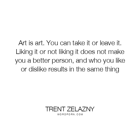 Art is art. You can take it or leave it. Liking it or not liking it does not make you a better person, and who you like or dislike results in the same thing