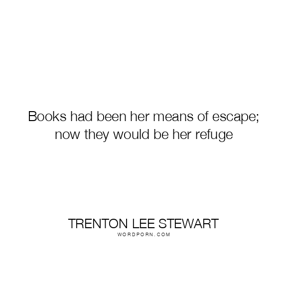 Trenton Lee Stewart quote. Books had been her means of escape; now they would be her refuge