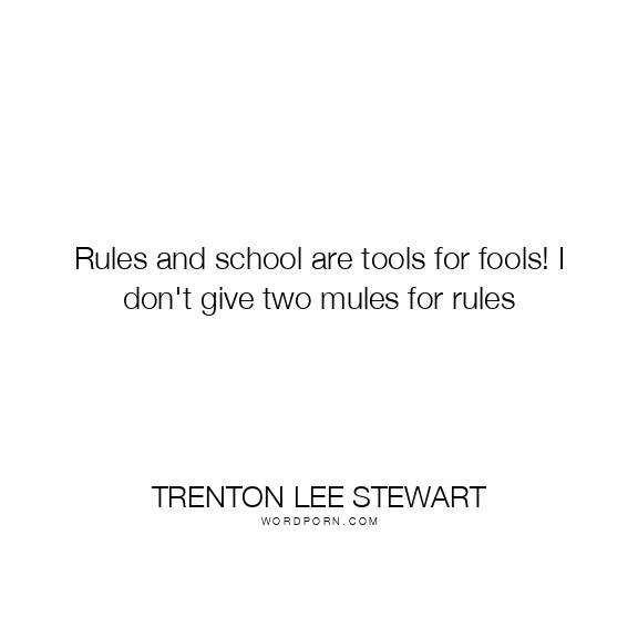 Trenton Lee Stewart quote. Rules and school are tools for fools! I don't give two mules for rules