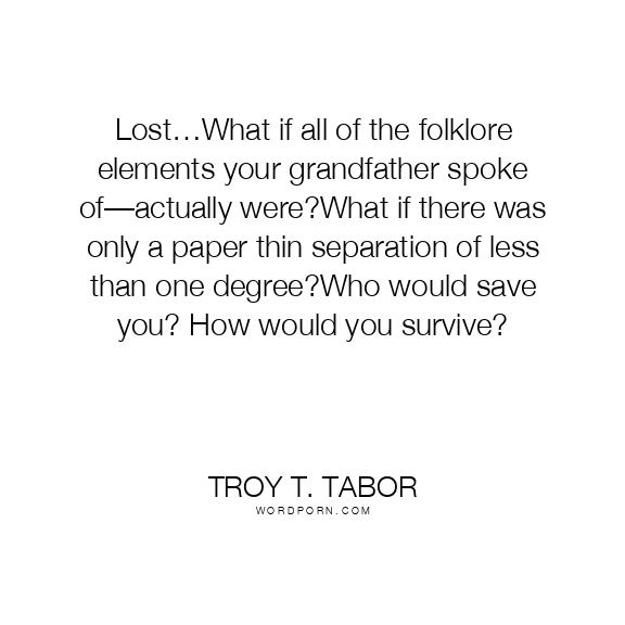 Lost…What if all of the folklore elements your grandfather spoke of—actually were?What if there was only a paper thin separation of less than one degree?Who would save you? How would you survive?