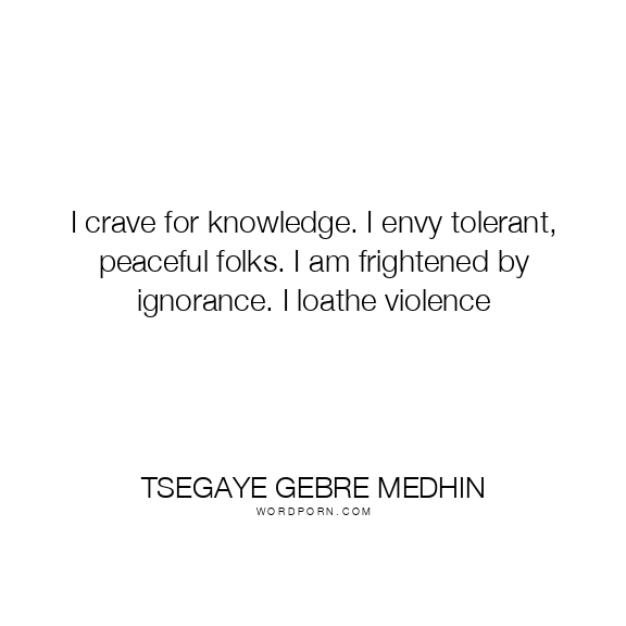 I crave for knowledge. I envy tolerant, peaceful folks. I am frightened by ignorance. I loathe violence