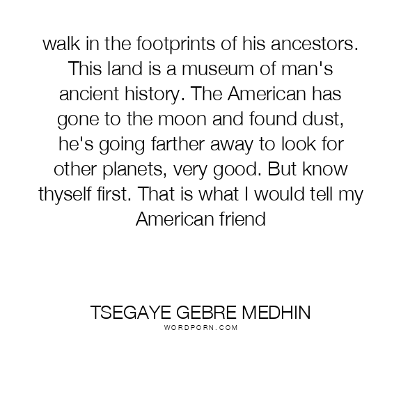 walk in the footprints of his ancestors. This land is a museum of man's ancient history. The American has gone to the moon and found dust, he's going farther away to look for other planets, very good. But know thyself first. That is what I would tell my American friend