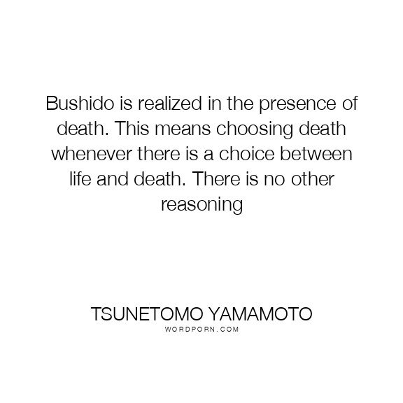 Bushido is realized in the presence of death. This means choosing death whenever there is a choice between life and death. There is no other reasoning