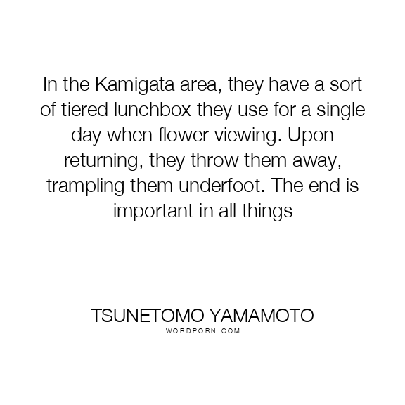 In the Kamigata area, they have a sort of tiered lunchbox they use for a single day when flower viewing. Upon returning, they throw them away, trampling them underfoot. The end is important in all things