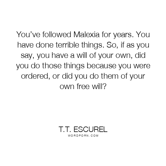 You’ve followed Malexia for years. You have done terrible things. So, if as you say, you have a will of your own, did you do those things because you were ordered, or did you do them of your own free will?