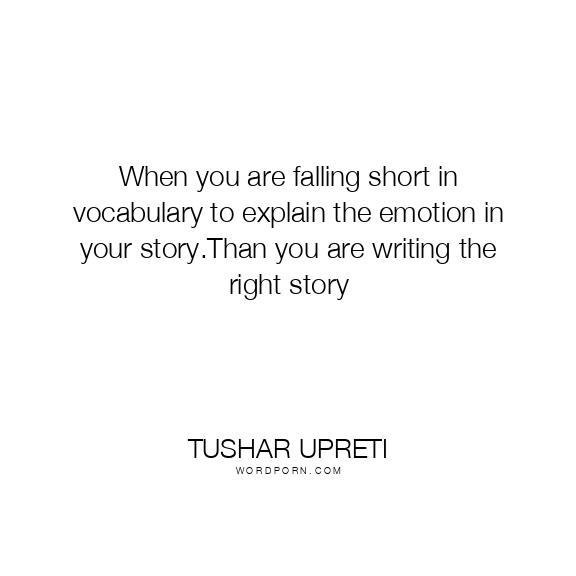 When you are falling short in vocabulary to explain the emotion in your story.Than you are writing the right story