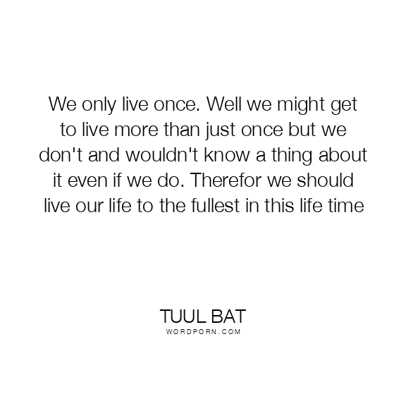 We only live once. Well we might get to live more than just once but we don't and wouldn't know a thing about it even if we do. Therefor we should live our life to the fullest in this life time