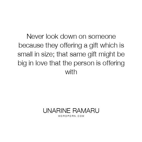 Never look down on someone because they offering a gift which is small in size; that same gift might be big in love that the person is offering with