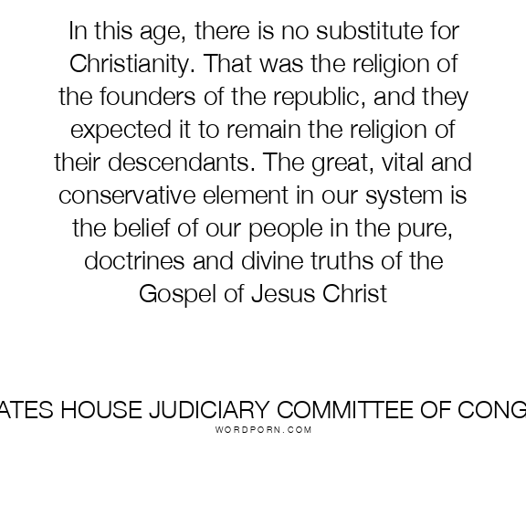 In this age, there is no substitute for Christianity. That was the religion of the founders of the republic, and they expected it to remain the religion of their descendants. The great, vital and conservative element in our system is the belief of our people in the pure, doctrines and divine truths of the Gospel of Jesus Christ