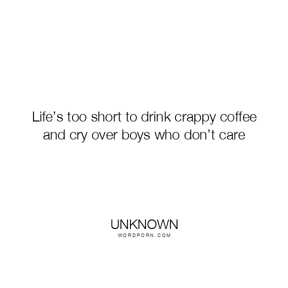 Life’s too short to drink crappy coffee and cry over boys who don’t care