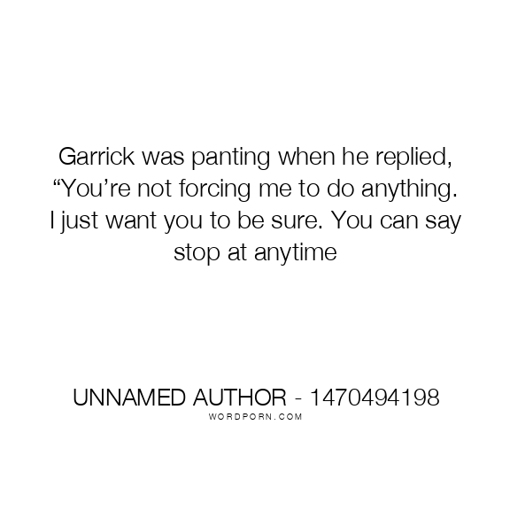 Garrick was panting when he replied, “You’re not forcing me to do anything. I just want you to be sure. You can say stop at anytime