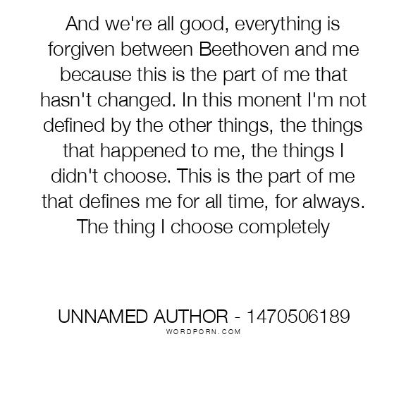 And we're all good, everything is forgiven between Beethoven and me because this is the part of me that hasn't changed. In this monent I'm not defined by the other things, the things that happened to me, the things I didn't choose. This is the part of me that defines me for all time, for always. The thing I choose completely