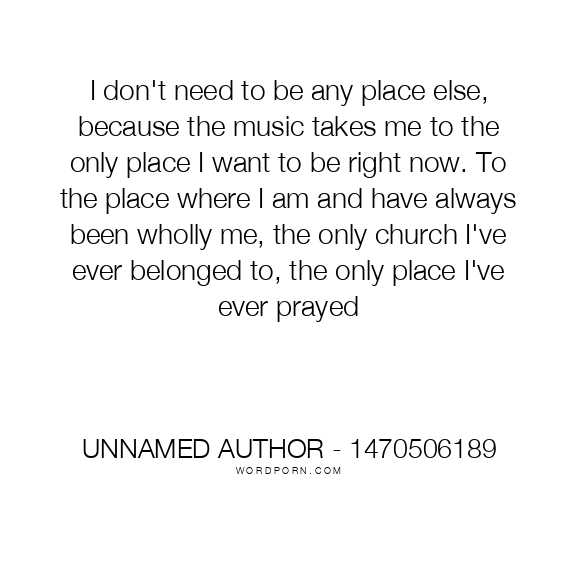 I don't need to be any place else, because the music takes me to the only place I want to be right now. To the place where I am and have always been wholly me, the only church I've ever belonged to, the only place I've ever prayed