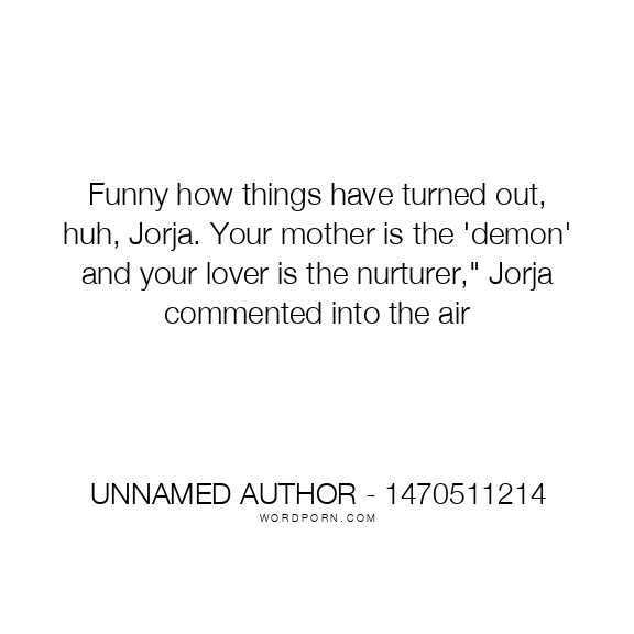 Funny how things have turned out, huh, Jorja. Your mother is the 'demon' and your lover is the nurturer," Jorja commented into the air