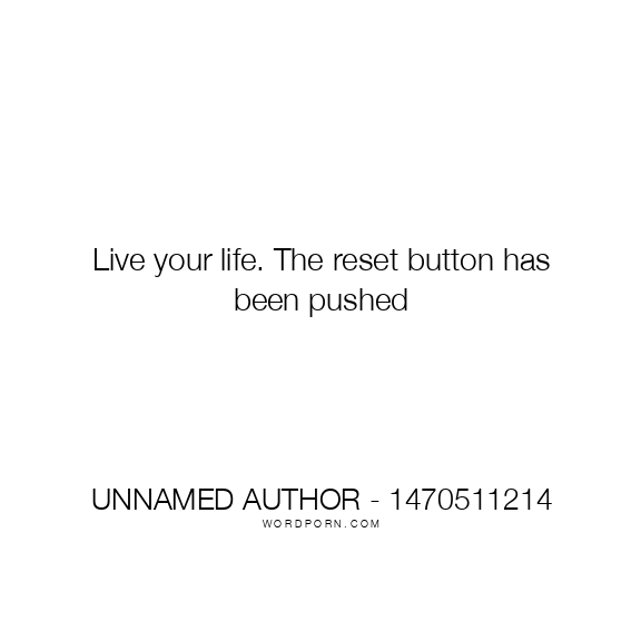 Live your life. The reset button has been pushed