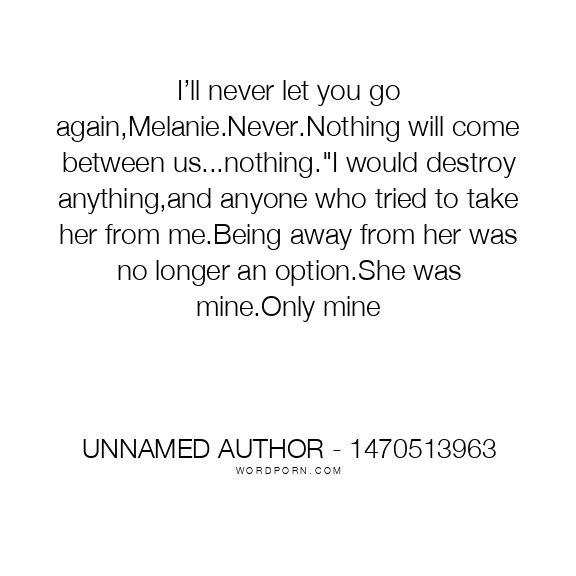 I’ll never let you go again,Melanie.Never.Nothing will come between us...nothing."I would destroy anything,and anyone who tried to take her from me.Being away from her was no longer an option.She was mine.Only mine