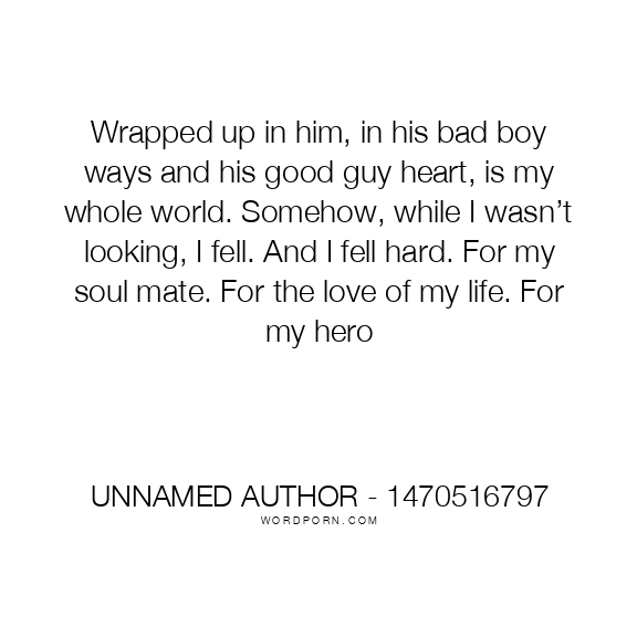 Wrapped up in him, in his bad boy ways and his good guy heart, is my whole world. Somehow, while I wasn’t looking, I fell. And I fell hard. For my soul mate. For the love of my life. For my hero