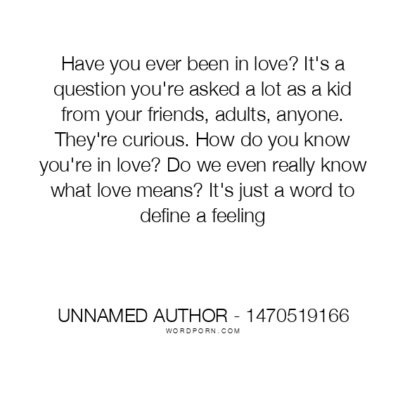 Have you ever been in love? It's a question you're asked a lot as a kid from your friends, adults, anyone. They're curious. How do you know you're in love? Do we even really know what love means? It's just a word to define a feeling
