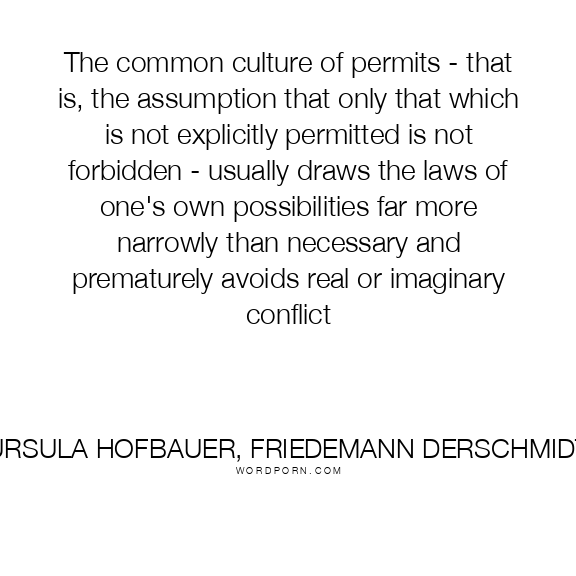 The common culture of permits - that is, the assumption that only that which is not forbidden - usually draws the laws of one's own possibilities far more narrowly than necessary and prematurely avoids real or imaginary conflict