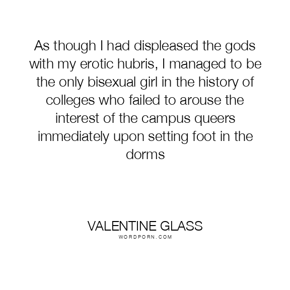 As though I had displeased the gods with my erotic hubris, I managed to be the only bisexual girl in the history of colleges who failed to arouse the interest of the campus queers immediately upon setting foot in the dorms